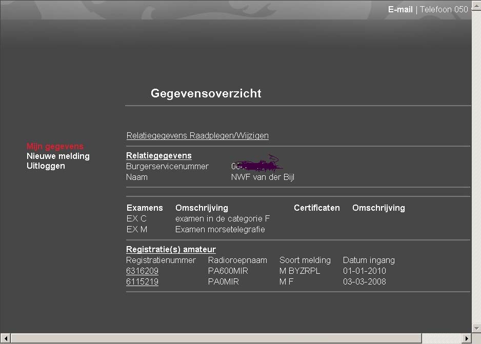 Heb je alles goed gedaan dan krijg je per kerende mail bericht met de toekenning van de roepnaam en zul je een volgende keer bij het inloggen iets kunnen zien als: