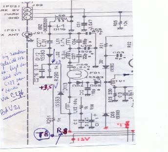 0.01 mF ) … diode D112 en C 276 ( 0.01 mF ) , Nu is de antenne ingang dus tegen grote ingangssignalen beschermd . D 113 gaat geleiden als de R8 er is , dus tijdens ontvangst .. nu is de katode van D112 hoger dan de anode en deze diode is nu gesperd . Dus nu kan er dus geen antenne signaal lekken naar aarde omdat D 112 nu een open schakelaar is .