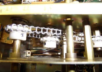Nu kan alles weer in elkaar worden gezet . Op de foto hierboven zien we de unit weer ingebouwd … de kettingen voor de bandschakeling en preselector kunnen er weer op … hierbij controleren dat alle schakelaars in de goede stand staan , dus dat ze voor elke band in dezelfde stand staan . Als alles dan , voor zover dat is te bekijken , weer goed zit kan het frontpaneel er weer tegen , knoppen erop . Ja, en dan komt het moment dat de spanning erop kan . Geen rare rookgeuren … alles lijkt normaal . De gloeidraden van de buizen gaan weer hun bekende kleurtje vertonen . Dus .. dummyload aan de antenneuitgang en weer de zender instellen op maximale output . Dat viel niet tegen … op 40 m. kwam er weer keurig 100 W uit . En … de band waarop de storing was , kon ook weer goed op maximum sturing worden ingesteld . Dus … deze klus was ook weer tot een goed einde gebracht .