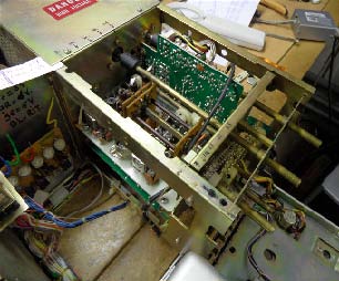 Nu was het zo , dat op de 15 m de sturing bij een bepaalde stand van de afstem condensatoren geheel wegviel . Dat doet ons dan denken aan een sluiting tussen de condensator platen , dus tussen stator en rotor . Dit nu kon ik meten terwijl de unit nog ingebouwd was … en jawel , op een sectie van de stuurrooster condendsator gaf de ohmmeter sluiting aan .. maar heel raar , bij bijna en geheel open condensator ! Dus .. die condensator moest eruit voor reparatie en dat is lang geen kleinigheid .