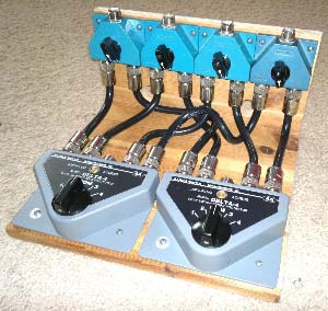 Een ander mogelijkheid is een kastje volstoppen met een aantal coaxrelais. Dat is een bijzonder dure oplossing, waarbij je dan wel ( via logische schakelingen ) kunt voorkomen, dat zender uitgangen met ontvanger ingangen verbonden worden. Zo’n apparaat heeft ook een voedingsapparaat nodig en met ongeveer 30 mA per relais loopt dat nog lekker op.
