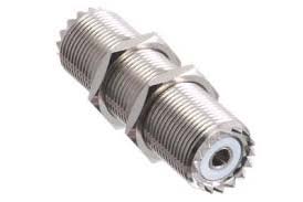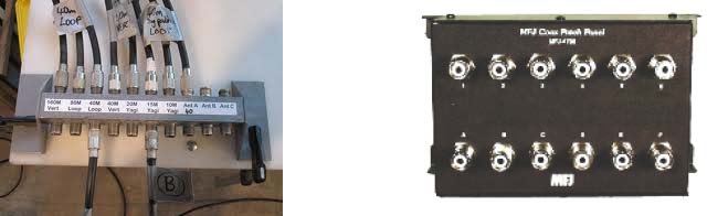 PLkoppelstukken er doorheen gestoken. Aan de achterkant sluit je radio’s, antennes en SWRmeter aan op hun eigen koppelstuk en aan de voorkant kun je dan met korte stukjes coax elke willekeurige doorverbinding maken. Een groot nadeel is, dat je ook een zender uitgang direct met een ontvanger ingang kunt verbinden! Zo’n panel zou er, met plastic paneel in plaats van hout, zo uit kunnen zien: