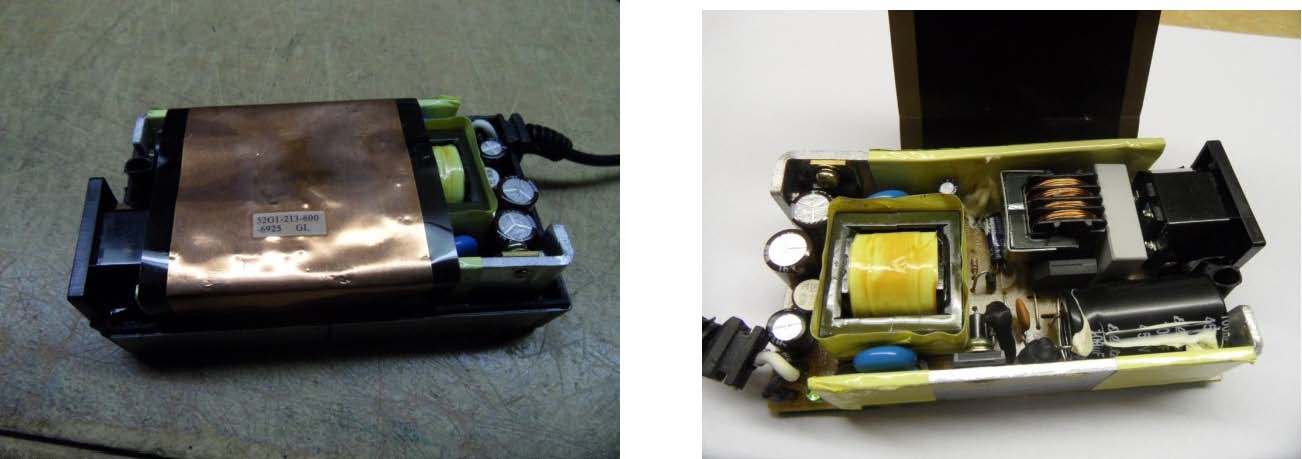 Bij mijn monitor voor de PC hoort een kleine 12 volt schakelende voeding. Ongelukkige combinatie met radio, want op 40 m had ik flinke stoorsignalen welk zo om de 50 kHz hoorbaar waren. Het ding kan zo’n 4 amp. leveren . Dus eerst vaststellen of het inderdaad door deze voeding werd veroorzaakt. Nou, dat was makkelijk zat .. even de 220 eraf … weg storing. Nu las ik wel eens over ontbrekende condensatoren , bijv. omdat weglaten ervan scheelt weer in de productie kosten. Nou .. dus de behuizing los getikt met een schroevendraaier in de naad van bovenen onderkant en zowaar, het binnenwerk kwam in zicht.