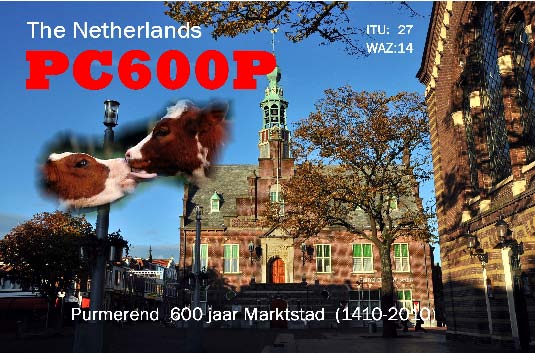 Ons clubstation PI4WLD zal als PC600P, ter gelegenheid van Purmerend 600 jaar marktstad, actief zijn van 30 april t/m 27 mei. Gedurende de eerste week van mei is het station actief vanuit een voor velen van ons bekende locatie, nl. het clubhuis van de Scoutinggroep Lamoraal van Egmond gelegen aan het Doplaantje in Purmerend. André, PA3HGP, zal hier van 3 tot 9 mei als 1st operator actief zijn met, naar wij hopen, de nodige ondersteuning van de afdelingsleden. Enige toezeggingen zijn al gedaan door enkele leden en op de verenigingsavond van 3 mei rekenen wij er op nog wat extra bemensing te vinden. Als u dus nog een uurtje (of meer mag ook) over hebt op genoemde dagen tussen