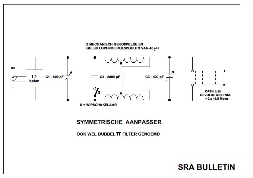 Ongeveer halverwege 2008 ben ik begonnen met het verzamelen van onderdelen voor het maken van een symmetrische tuner, een zgn “dubbel pifilter”. Als ik dit schrijf, eind 2010, is het apparaat gereed en naar tevredenheid werkend. Hieruit blijkt dat een experiment niet altijd overmorgen klaar is. Soms duurt het langer. Was ik eerst van plan om de tuner te maken met vaste spoelen en schakelaars, het is iets heel anders geworden. De oorzaak daarvan is dat ik twee identieke rolspoelen kon kopen via het internet, van twee verschillende amateurs. Dat was een buitenkans. Variabele C's had ik al genoeg in huis zodat ik daaruit kon kiezen. De twee rolspoelen moesten precies gelijk draaien. Daarvoor bestelde Stan voor mij een tandenriem met tandwielen. Hij draaide ook twee asjes om het geheel compleet te maken. De montage van alle nogal fors uitgevallen onderdelen in een behuizing van aanvaardbaar formaat was nog een hele puzzel, maar ook dat lukte. Zo kon ik op een dag de coax van de G5RV antenne afhalen en met de kippenladder, die al tot in de shack aanwezig was van eerdere experimenten, weer doorverbinden. De tuner werkte redelijk, maar de breedbandigheid liet te wensen over. De banden 17, 20, 40 en 80 meter konden ermee worden bestreken. Binnen dat gebied werkte het spul goed, maar daarmee was ik nog lang niet tevreden.
