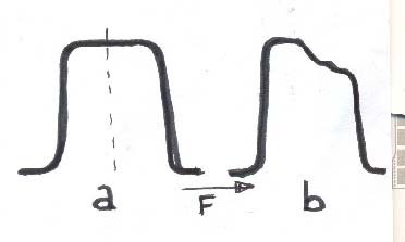 De top is dus vlak . Gaat het zoals in curve b dan is er wat aan de hand met het filter . Dus in het geval van een slechter filter kan het verloop ook anders zijn . Ideaal is dus a . Zelfs is het zo mogelijk om te bekijken hoe breed je CW filter is . Op het display kun je dat dan aflezen. (gezien in Wireless World )