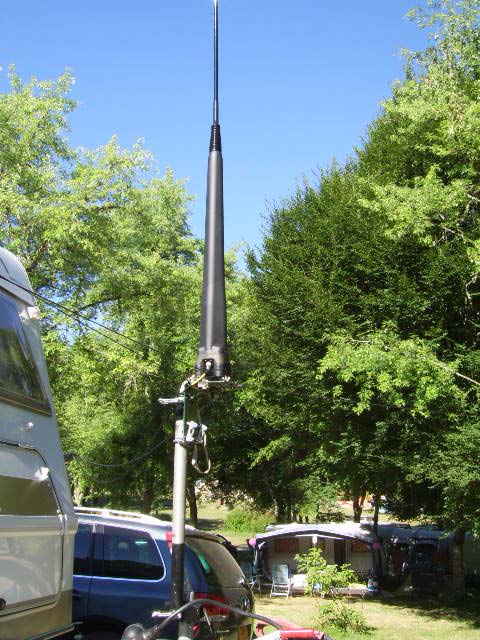 Afgelopen vakantie heb ik de antenne tot in den treuren getest. En heb er ongelooflijke mooie verbindingen mee gemaakt van Bear Island tot India, Australie en Zuid Amerika om maar wat te noemen. Ik had de antenne op slechts 180 cm boven de grond staan, voorop de dissel van de caravan. Nu was de XYL wel tevreden, de antenne viel echt bijna niet meer op (alleen de kleur zwart, stak een beetje af tov de witte caravan hihi) Er kwam, zoals ieder jaar, natuurlijk weer iemand vragen wat voor raket achtig ding het was, ik heb hem uitgelegd waar het voor diende maar de persoon snapte er geen bal van en heb hem toen maar gezegd dat ik mijn WIFI bereik ermee kon vergroten,dat begreep hij nu weer wel, Hi.