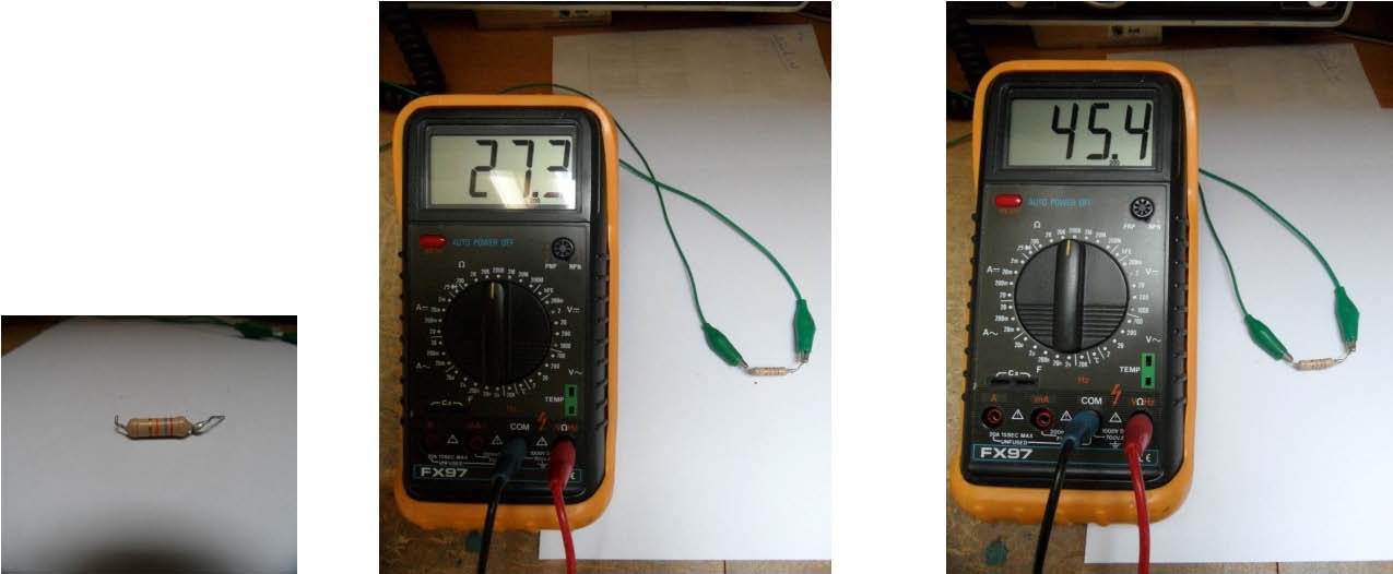 Hier zien we twee waardes, de linkse is goed: 27 k Ohm. De rechtse gaf een steeds veranderende waarde aan, toevallig knipte ik de foto bij 45 kOhm . Wat was nu het geval …