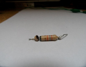 Dit is een opgedampte koolweerstand en nu bleek dat één van de eind kapjes er los opzat . Zolang de weerstand op de print zat werd dat kapje redelijk stevig tegen het weerstandslichaam gedrukt en was de waarde 27 kOhm. Maar bij oplopende temperatuur in de kast werd dat contact vanwege dat losse kapje slecht met als gevolg die afwijkende weerstandswaarde. Zodat de 85A2 buis niet de juiste spanning kreeg. Leuk foutje … och , eigenlijk wel ! Het is toch hobby ?