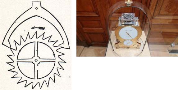 De aantrekkende zwaartekracht is nu vervangen door een veersysteem. Men zou het kunnen vergelijken door een slinger met een elastieke band. Als men de slinger zou ronddraaien met wisselende kracht dan rekt het elestiek meer of minder uit, waardoor de baan groter of kleiner wordt, maar de omlooptijd veranderd niet. Newton toonde aan dat dit systeem isochroon is, dat wil zeggen dat omlooptijd alleen afhankelijk is van de massa van het gewicht en de veerconstante. Bij de uitvoering van het systeem zijn veel manieren mogelijk om de gewichten veer functie te realiseren. Op onze internet pagina is een voorbeeld en referentie naar andere uitvoeringen te vinden. (PA0PHB)