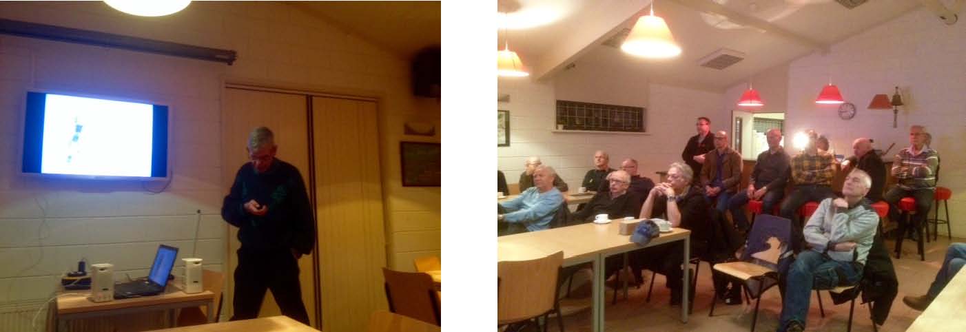 Een grote hoeveelheid technische informatie, maar Hans gaf dan ook enorm veel details van allerlei apparatuur. Het was soms een beetje om te duizelen, zoveel er op je af kwam. Zie dan ook op bovenstaande foto een deel van het aandachtige publiek. Er waren toch wel zo’n 25 toehoorders. Mooie benamingen die de duitsers gaven aan hun systemen. Neem nu bijv. Knickebein .. dan denken we aan een been met een knik? En dan Oboe bij de Engelsen.