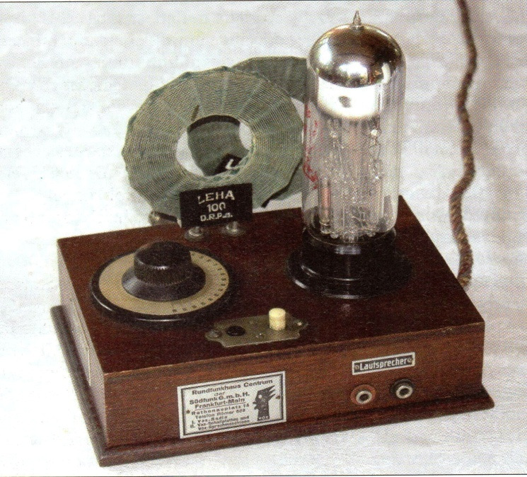 De type plaat geeft aan dat het toestel van 1926 is verkocht door het “Rundfunkhaus Centrum” in Franfurt am Main . Het gaat hier om een radio model OE333. Een verbeterd type, de OE433 had terugkoppeling voor instelling van de selectiviteit en gevoeligheid. Dus .. die was al een stuk beter. Reparatie was erg eenvoudig toen, altijd was de radiolamp de schuldige. Een gloeidraad was nogal al kwetsbaar en per ongeluk verwisselen van anode en gloeidraad accu’s was de dood van deze mooie radiolamp. Deze kwam uit als type 3 NF.