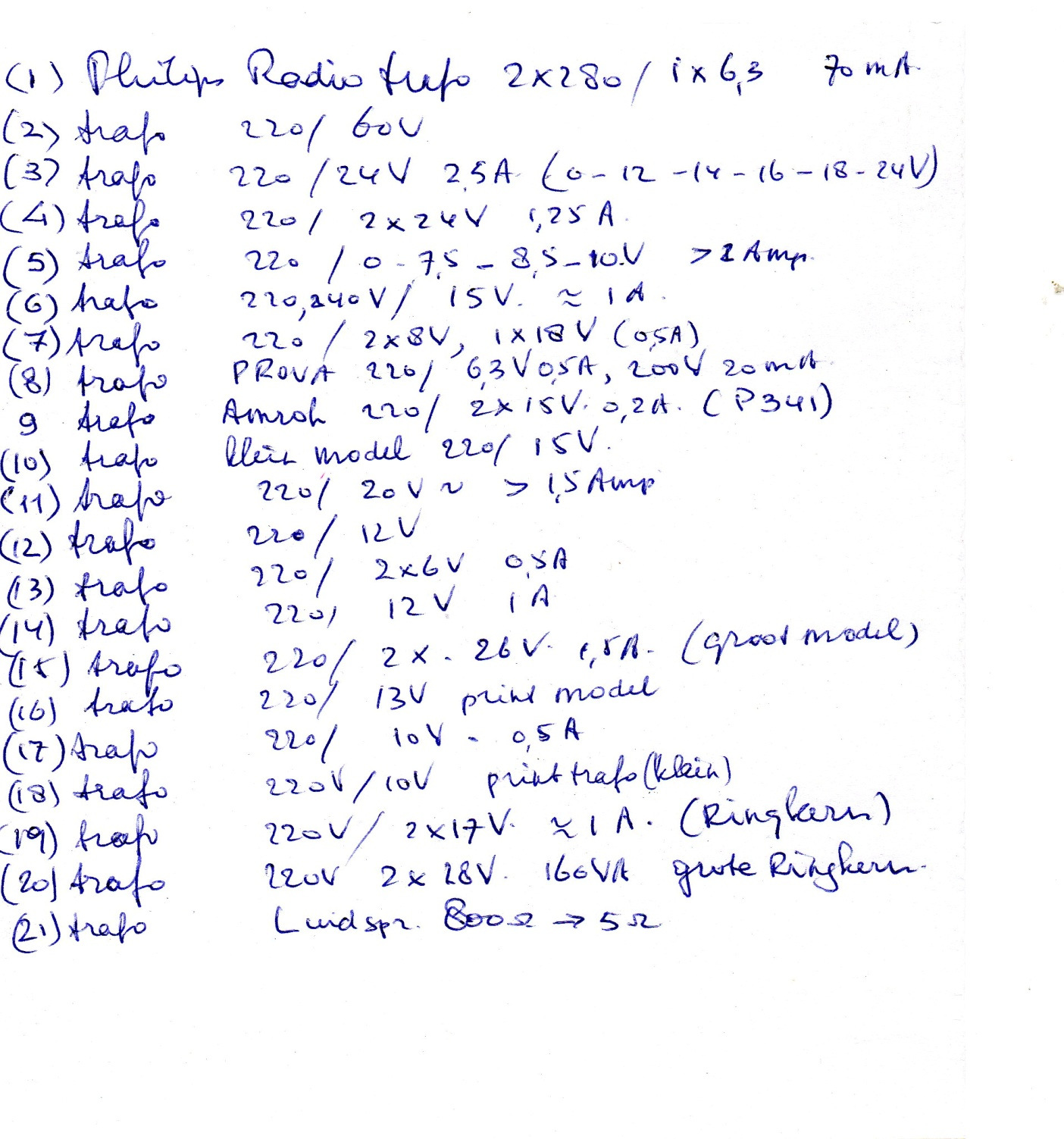Transformatoren in aanbieding en mogen voor niets weg. Zitten best leuke exemplaren bij, zie de lijst. Bijv. een flinke ILP ringkerntrafo.