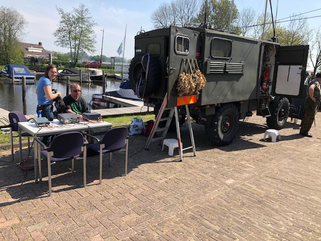 De forteigenaar was tevens niet op de hoogte dat het havenkantoor afgesloten was door vrijwilligers en baalde hier na afloop van de dag zichtbaar van, omdat dit niet zo was afgesproken met ons. Op de tweede dag besloten wij gesteund door het wederom zomerse weer en ervaring van de vorige dag buiten achter de radiowagen van Anton PE1JAS te gaan zitten. Welke de eerste paasdag PI4C had bemand. Door de verplaatsing naar de buitenlucht met materiaal en de radiowagen veel meer aanloop gehad van geïnteresseerde bezoekers die zich afvroegen wat die gekken aan het doen waren.