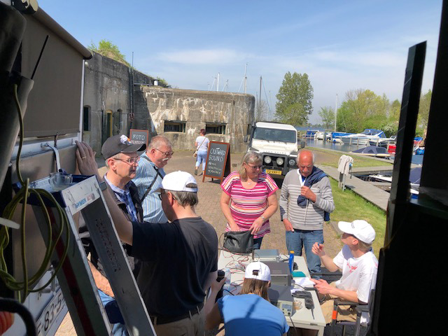 Na het opzetten van de antennes en apparatuur bleek dat diverse vrijwilligers van het fort tegen de afspraken in hadden besloten dat het havenkantoor vanwaar wij zonden dicht moest ‘omdat ze hun spullen ergens veilig moesten opbergen’. De opkomst van bezoekers bij ons viel daardoor tegen. Daarnaast waren ook de condities niet optimaal voor radio verbindingen. Desondanks diverse eyeball qso’s met mede amateurs gemaakt en 11 verbindingen op zowel de 40 als de 2meter band. Maar helaas behalve met PI4C geen enkel ander fort kunnen bereiken.
