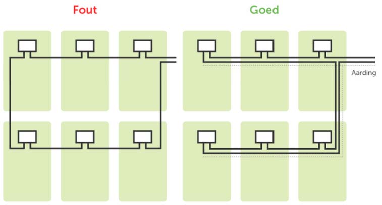 Voorkom inductielussen met een correct legplan Bron: ISSO Handboek Zonne-energie, versie 2016.