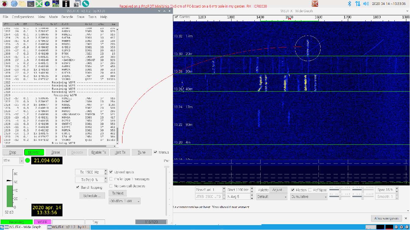 WSPR gaat ook leuk, de best te DX op de lange golf (137 kHz) is K3RWR R en op 475 kHz heb ik ook al diverse US-ama ateurs zien verschijnen, maar zelfs tijdens s deze zonnevlekloze periode, word je nog wel eens verrast op de 20 meterbannd.