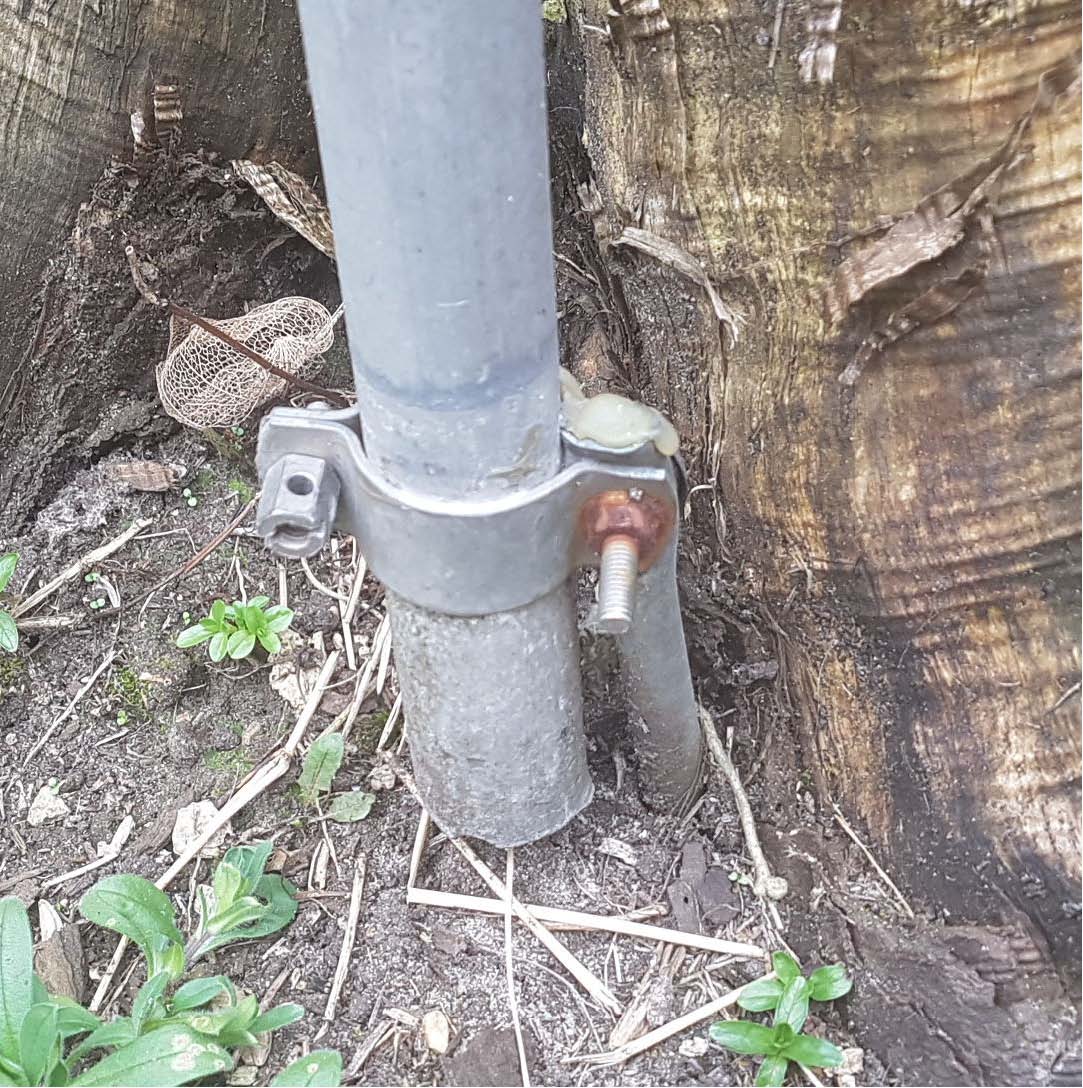 Zet die op een aluminium paal en zorg ervoor dat die goed geaard is. Het beste vlak daarbij een stuk koperen waterleidingbuis de grond in slaan. Bij mij is dat 2,5 meter.
